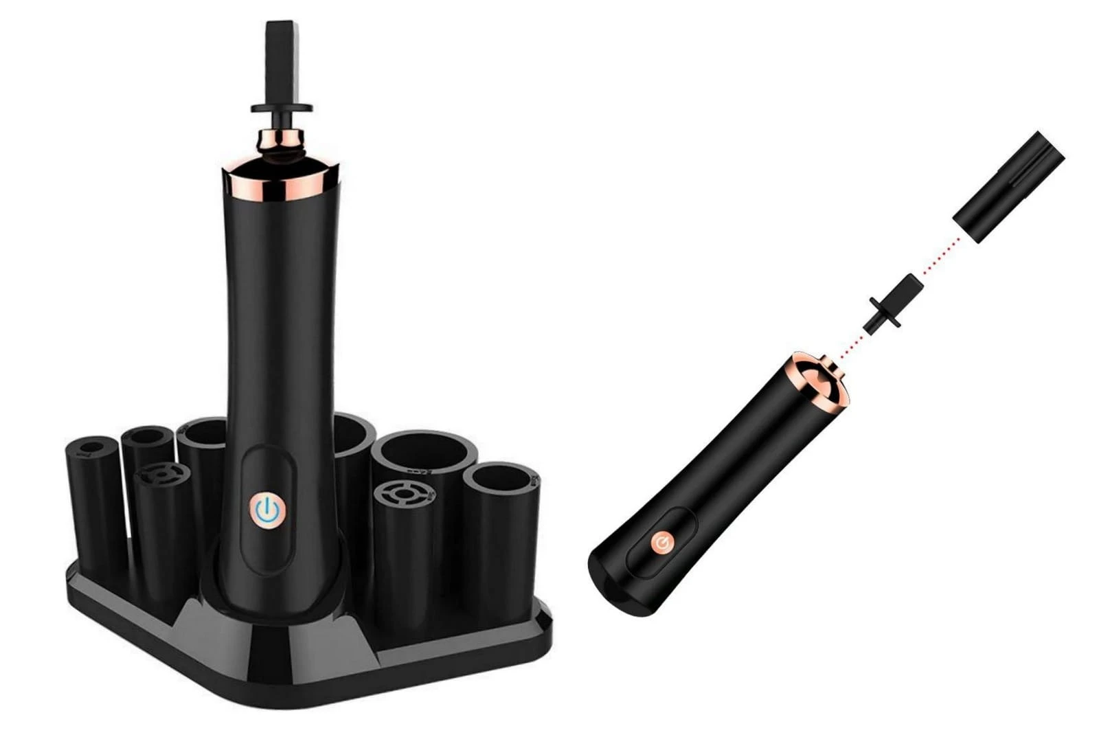 Profesjonalna wstrząsarka/ shaker/ mikser do pigmentów, tuszy, lakierów czy klejów. Można tym miksować/wstrząsać/mieszać każdy preparat który należy dobrze wstrząsnąć/wymieszać przed użyciem. Pięknie wykonany, czarny, profesjonalny, elektryczny. Stawiany na plastikowej podstawce. Pasuje do większości kształtów butelek w rozmiarach od 5mm do 35mm W skład zestawu wchodzi: 1x urządzenie 2x wrzeciono 8x silikonowe końcówki 1xpodstawka 1xśmigiełko Pracuje na 2 baterie paluszki AAA. Baterie nie załączone w zestawie. Kolor czarny.