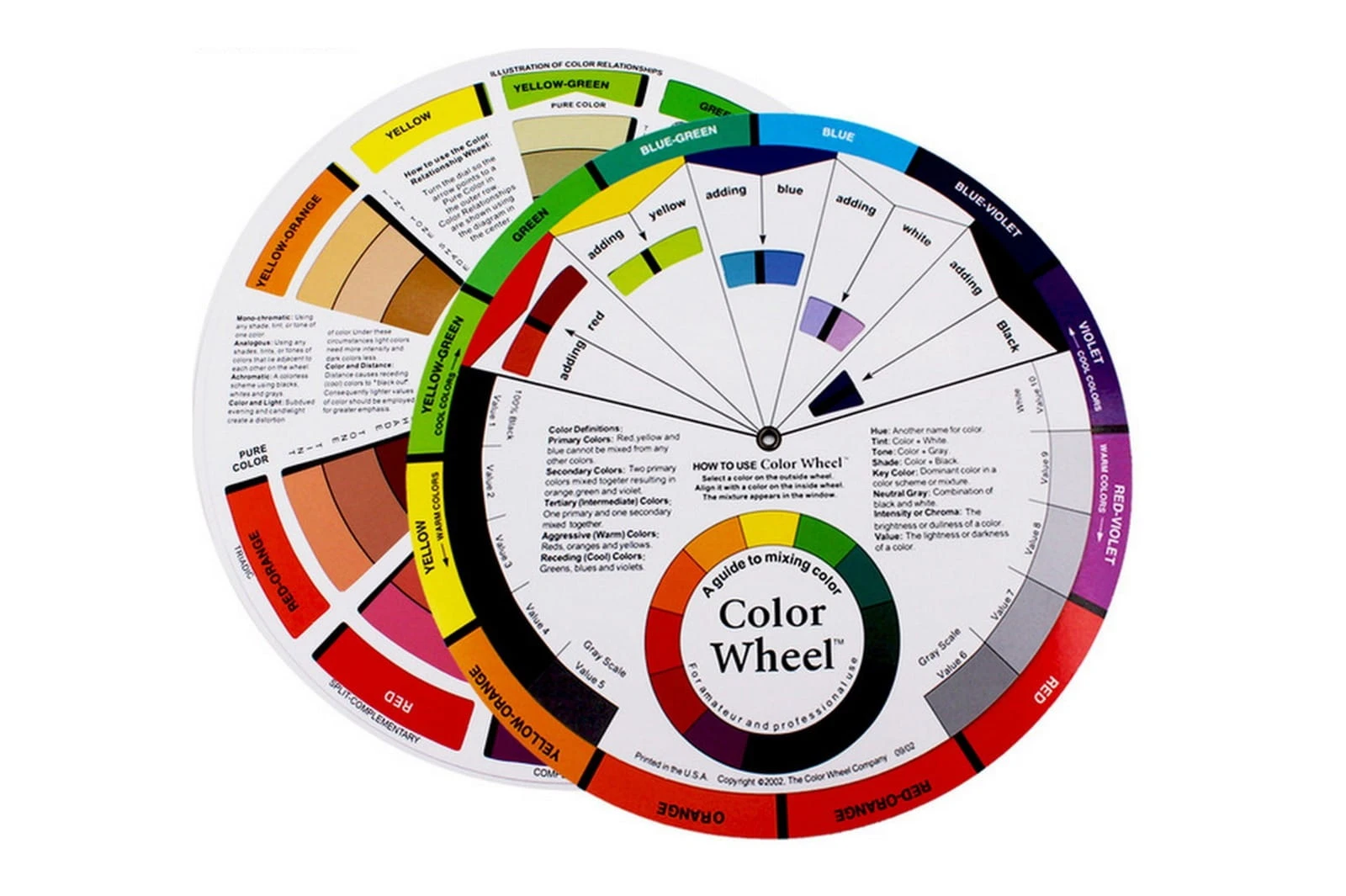 Dzięki kołu kolorów Color Wheel można poznać teorię i praktykę mieszania kolorów. Daje przykładową wizualną pomoc do nauki kolorów i relacji między nimi, dzięki kołu kolorów można stwierdzić czy dane zestawienie barw jest harmoniczne. Zewnętrzny pierścień zawiera kolory drugorzędowe, drugie koło na zewnątrz zawiera kolory podstawowe oraz wewnątrz wynik mieszania kolorów drugorzędowych (barwy otrzymywane przez zmieszanie ze sobą dwóch kolorów podstawowych) z kolorami podstawowymi. Świetna pomoc zarówno dla początkujących jak i dla zaawansowanych.