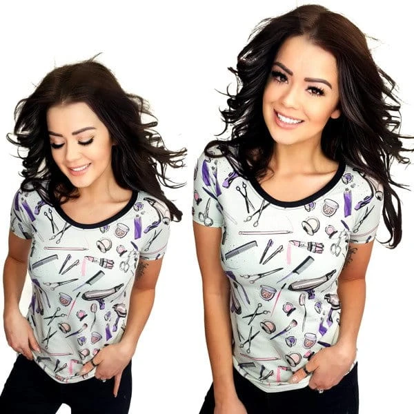 Motywy suszarek i grzebieni na koszulce sprawiają, że do twarzy w niej będzie każdej fryzjerce !!