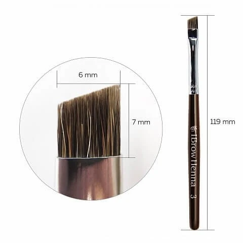 Ścięty pędzel z naturalnego włosia (szop pracz), sprężysty i gęsty. Umożliwia ruchami podbijającymi równomiernie nanieść hennę na brwi, nie pozostawiając żadnych szczelin na skórze. Pędzel doskonale absorbuje kompozycję henny, łatwo ją “daje” na skórę. Idealnie nadaje się dla problematycznej skóry.